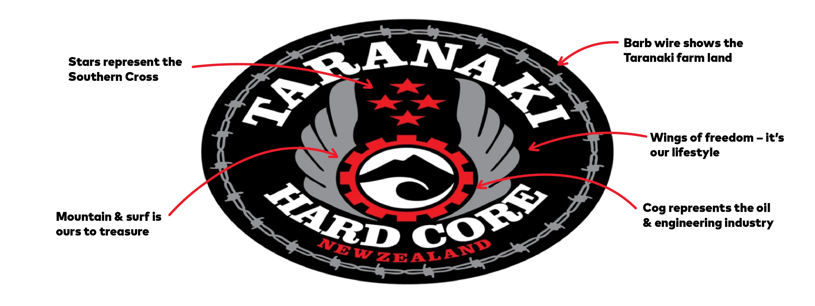 In 1996 a customer came into the Del Free & Easy store and asked if they had a Taranaki-branded t-shirt. They didn’t but saw that there was indeed a gap in the market for a product that celebrated the outdoor culture of the region. Working with local skier, surfer and screen printer, Karl Quinn from Screen Art they developed a t-shirt logo that incorporated elements of Taranaki - the mountain, the sea, farmland, the oil industry and the 'wings of freedom' that represented the Taranaki lifestyle.